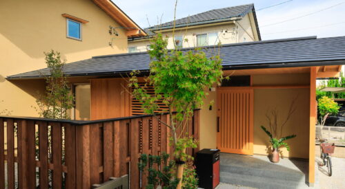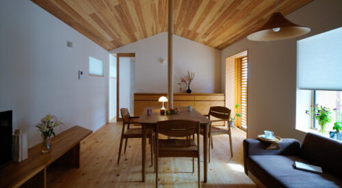 大人3人で住む落ち着いた切り妻屋根の家です。