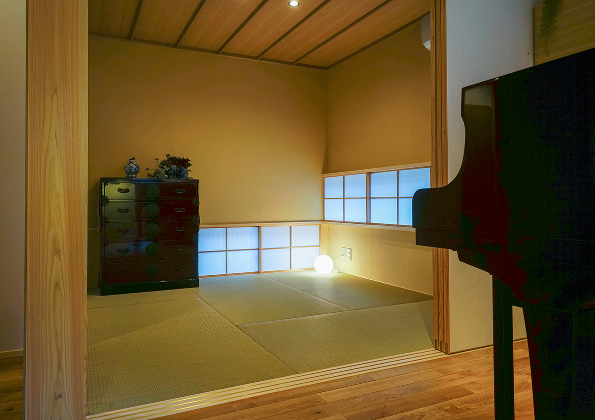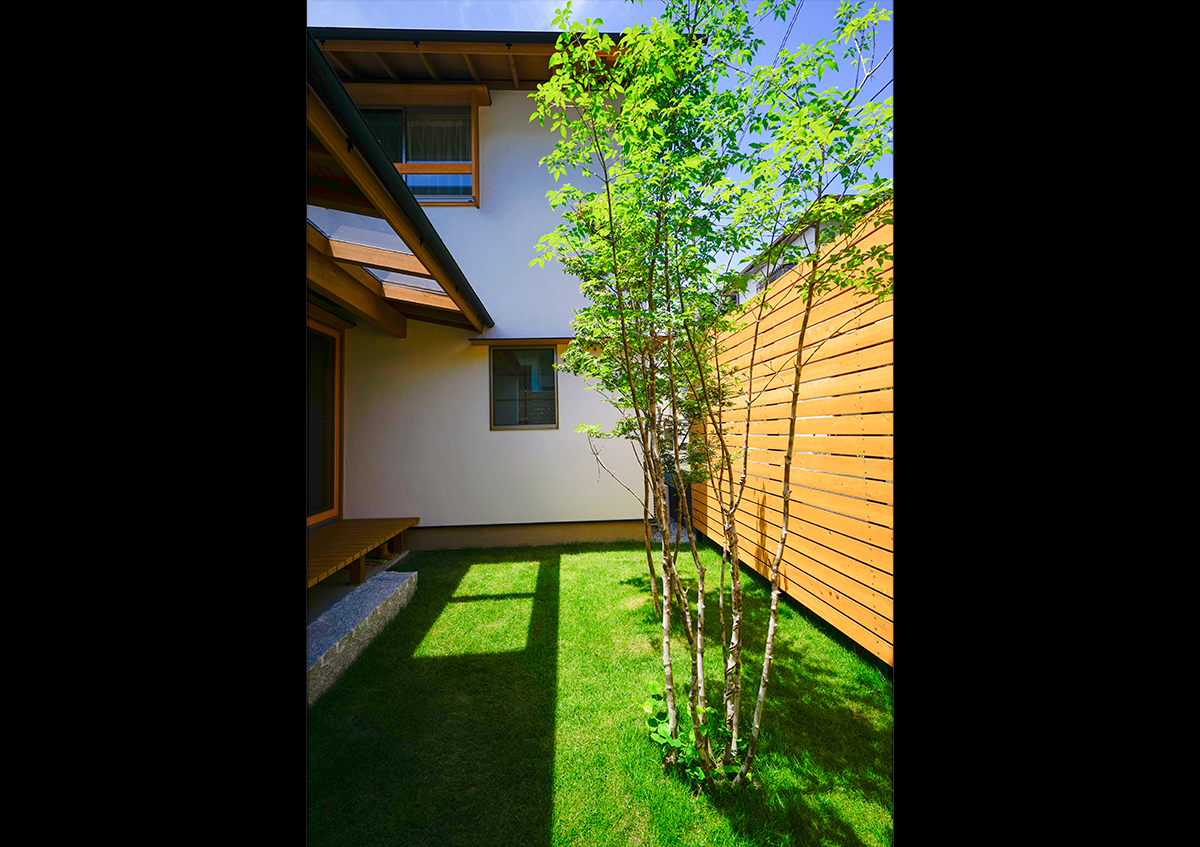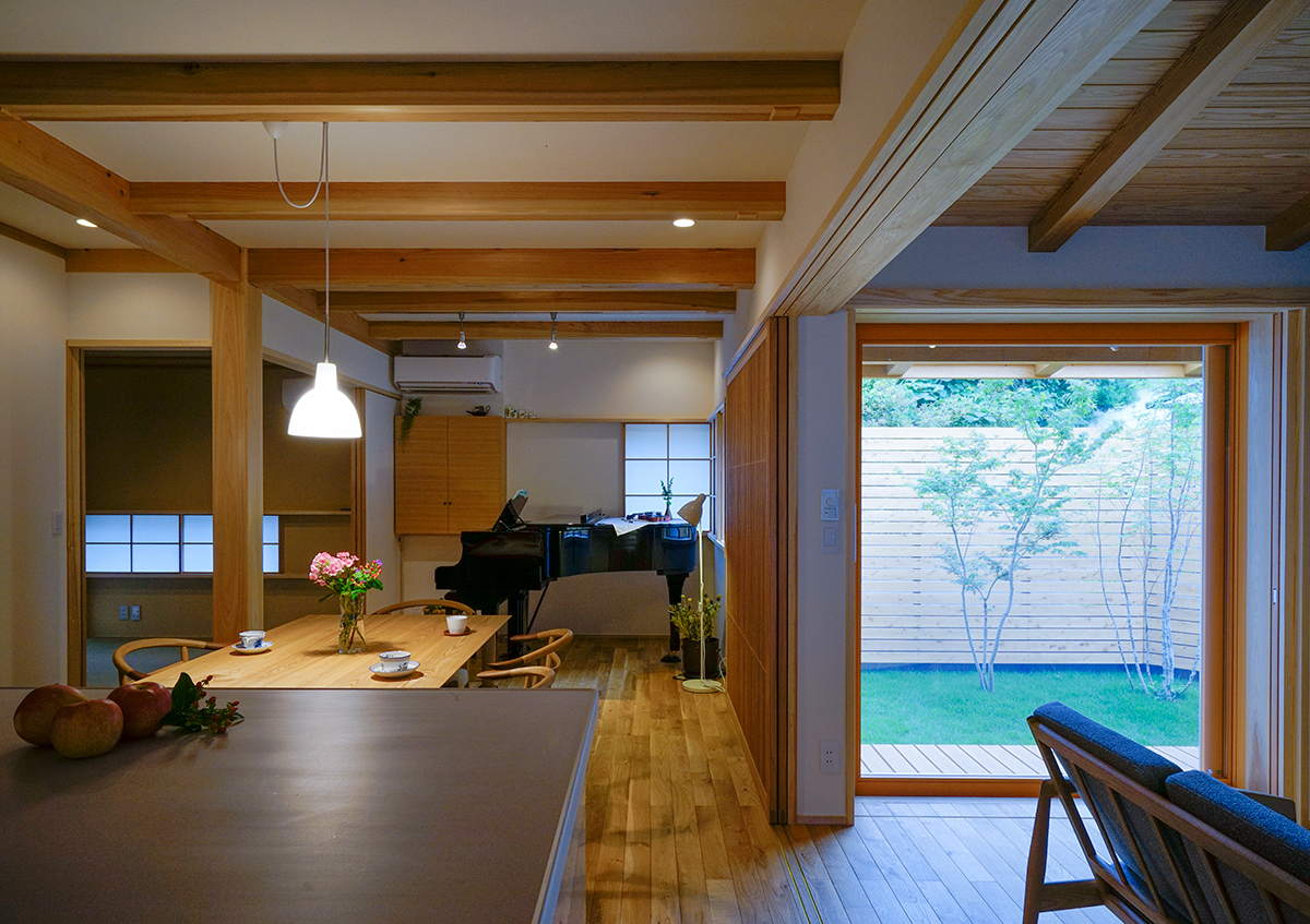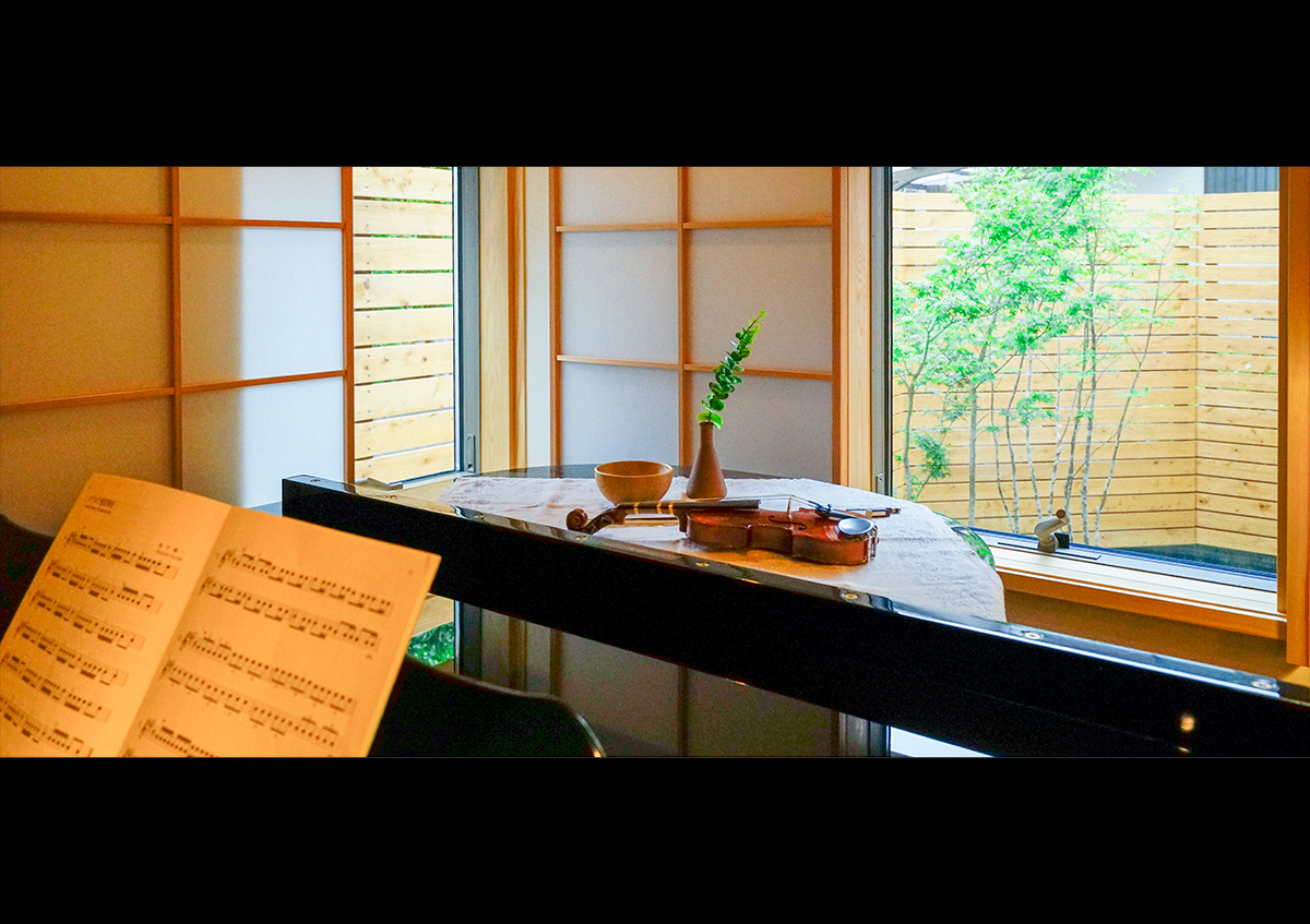 閑静な住宅街において目立たずとも雰囲気の良い家になるように建物の形やデザインを考えました。また周囲を囲まれている敷地において居心地良く過ごすために部屋の配置計画や窓の位置などを細かく検討しています。ダイニング空間には奥様が小さい頃から弾いてきたグランドピアノが置かれ楽しい音楽で包まれることでしょう。また2階にはご主人と奥様の書斎がそれぞれ有り、おうちでお仕事も出来るようになっています。ご家族それぞれが充実した過ごし方を出来るお宅です。