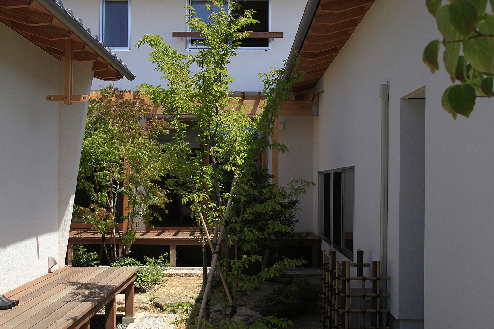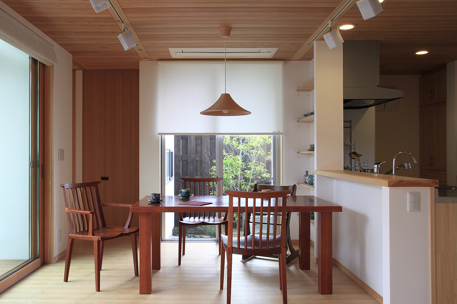 風流、「風が流れる」という「ゆらぎ」は日本人独特の感性で、「ゆらぎ」を楽しむことは最高の贅沢かもしれません。慌ただしい毎日の中から、ほんの僅かな「ゆらぎ」を見出せることが出来たら心豊かに過ごせるのではないでしょうか。自然を楽しみながら、住まいの外と内に居ても愛着を感じる場所・場面のある家であると同時に、大切な家族とともに時を育む。夕食の支度をする母へカウンター越しにその日あった出来事を話す―そんな風景を記憶として残す場面づくりが出来る空間を想い描きながら設計しました。