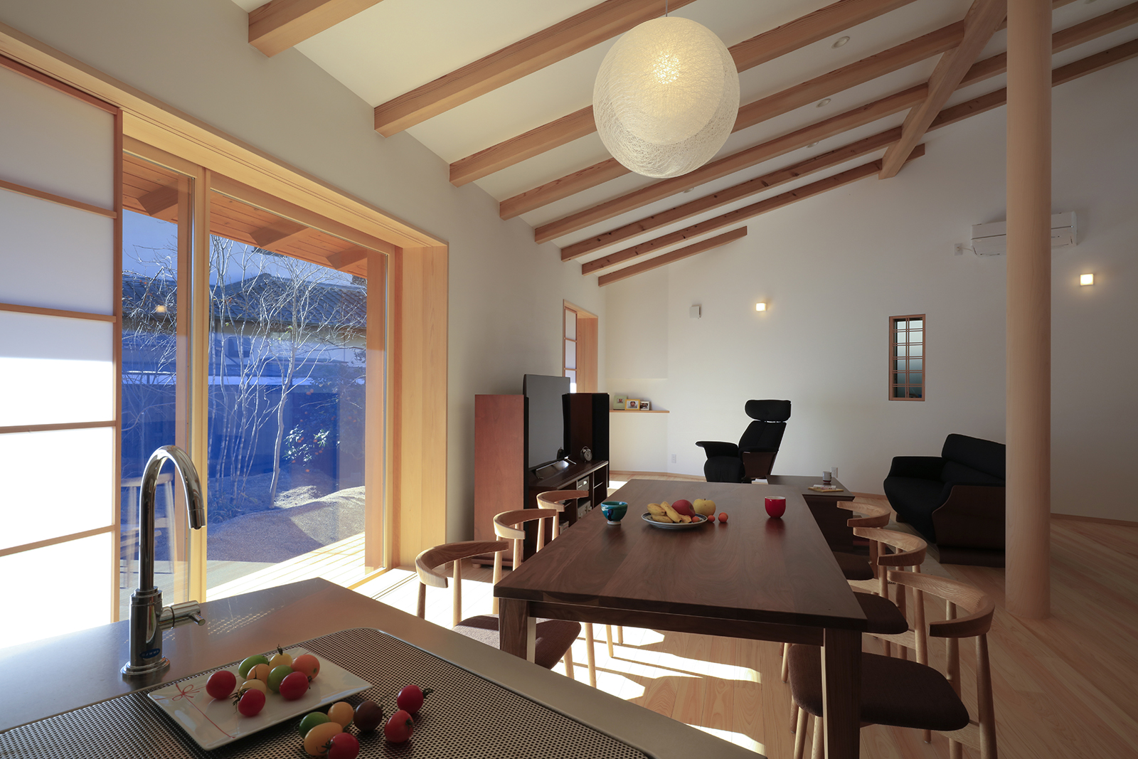 将来、家から出て遠く離れた場所に新しい生活を築いたとしても、「いつでも帰りたいと思える場所」になれば良いなという思いで設計しました。家族と他愛ない話をした日常、誕生日やお正月などのイベント、隣の工場から作業服で出てくるお父さんの姿・・・きっと、お子さんにとってはそれらが大切な場面として心に残ると思います。ふと実家を懐かしむとき、それは建物の姿かたちではなく、父の姿や母の手料理、家族との会話、それらをとりまく場面だと思います。