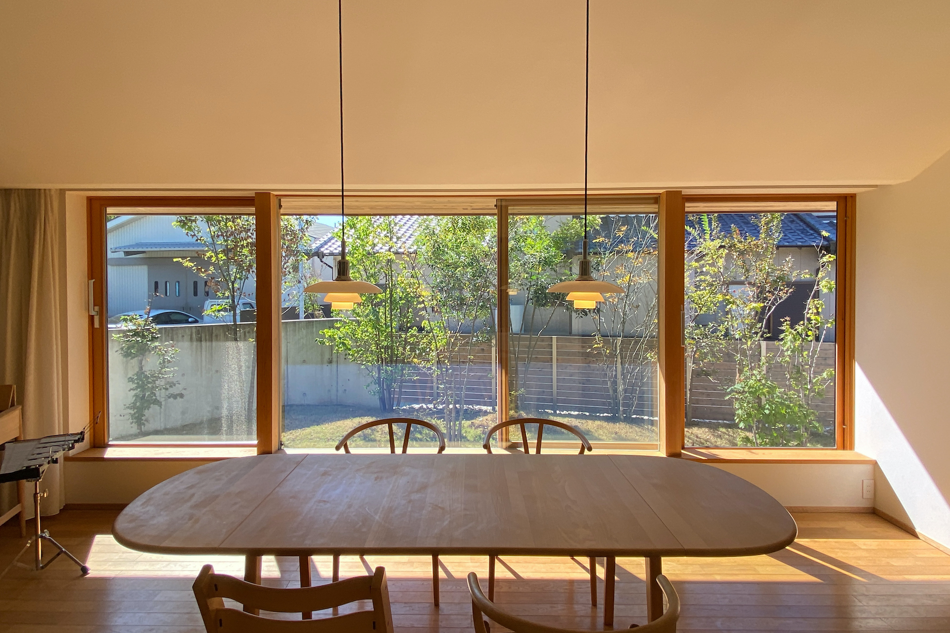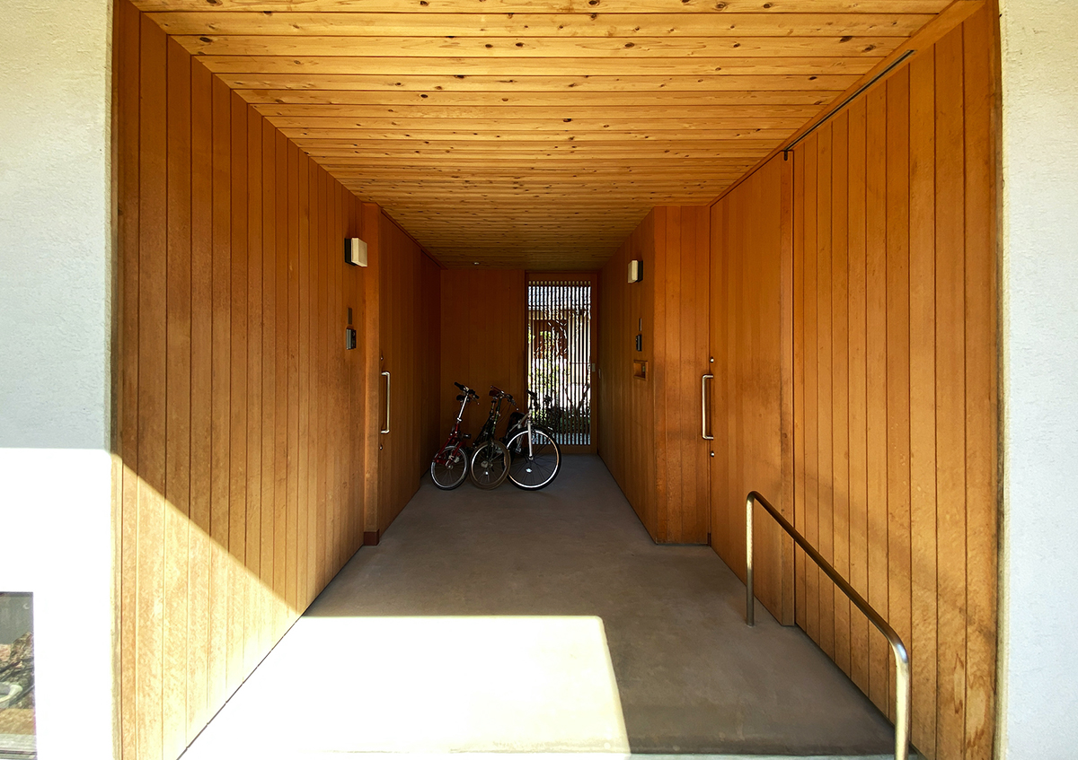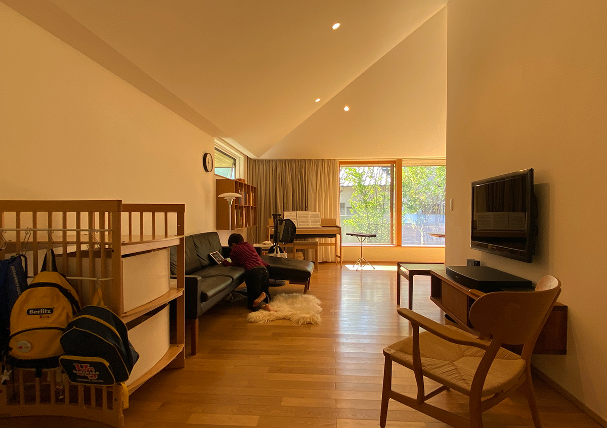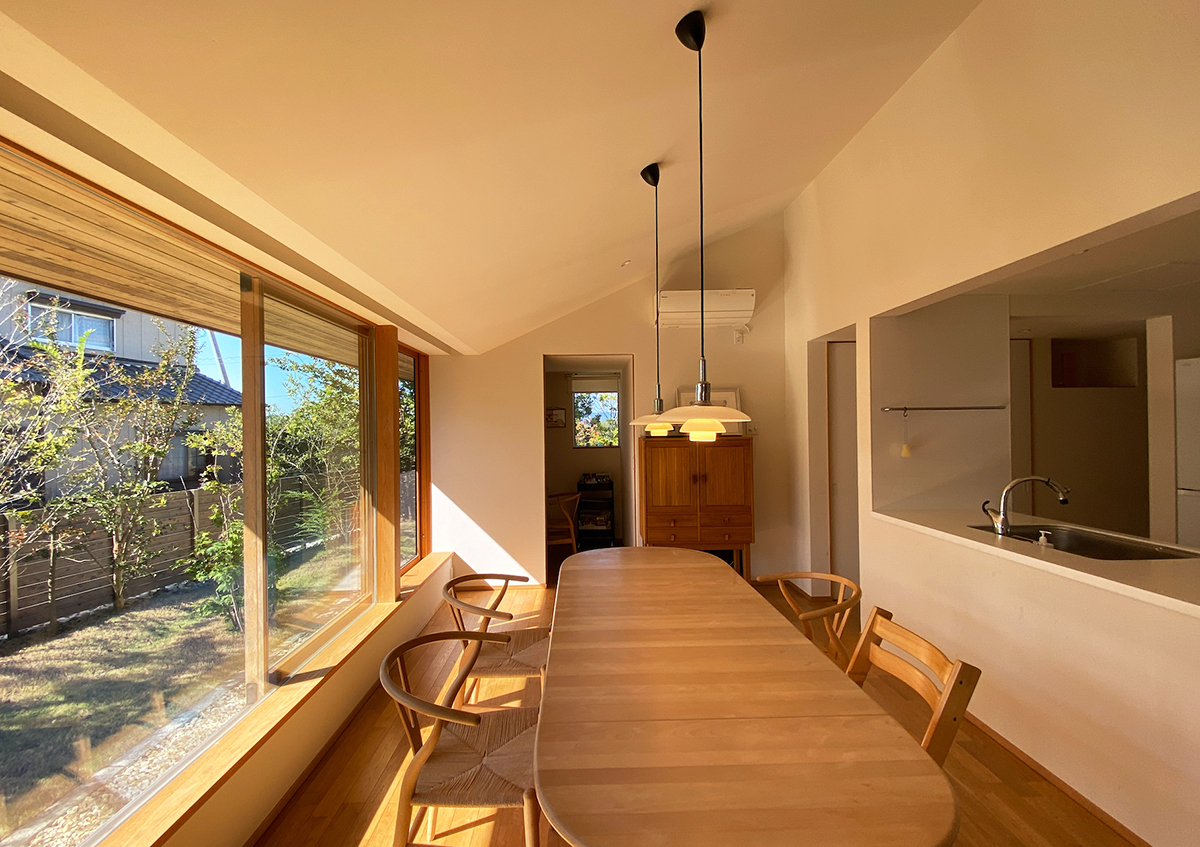 住み始めてから5年後の舘山寺の長屋にお伺いしました。とても家を大事にされていて、住み始めた頃と変わらず住んでいただいていることに大変うれしく思いました。建て主は、ご夫婦ともに、計画当初から、お気に入りの家具や照明がもうすでに決まっていたり、余分なものはいらないという家のイメージだったりと、「シンプルに暮らす」ということに対して、かなりこだわりを持っていらっしゃいましたが、5年後になった今でも、その暮らし方について、そのまま体現されていることにとても感銘を受けました。今回このように変わらずに住んでいただいていることを拝見して、人それぞれに、考え方や暮らし方はあるにせよ、何でも付け足していく考えではなく、必要なものを絞り込んでいくシンプルさもとても大事なことなんだということを改めて感じました。