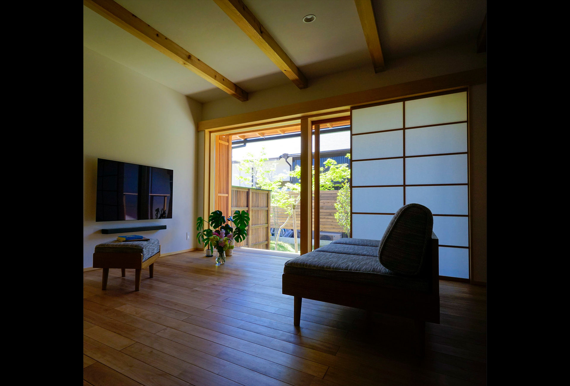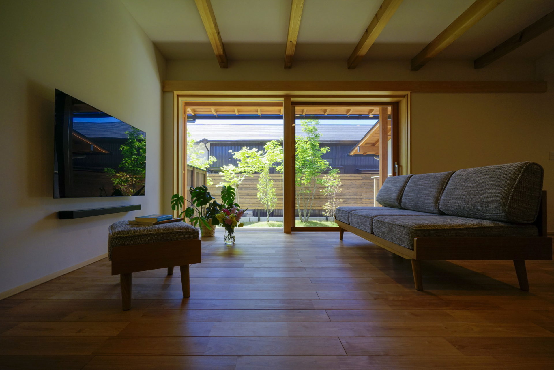 親と子が一緒に住む大人の家です。それぞれがそれぞれの生活を尊重しながら、助け合い思いやりながら住まわれています。