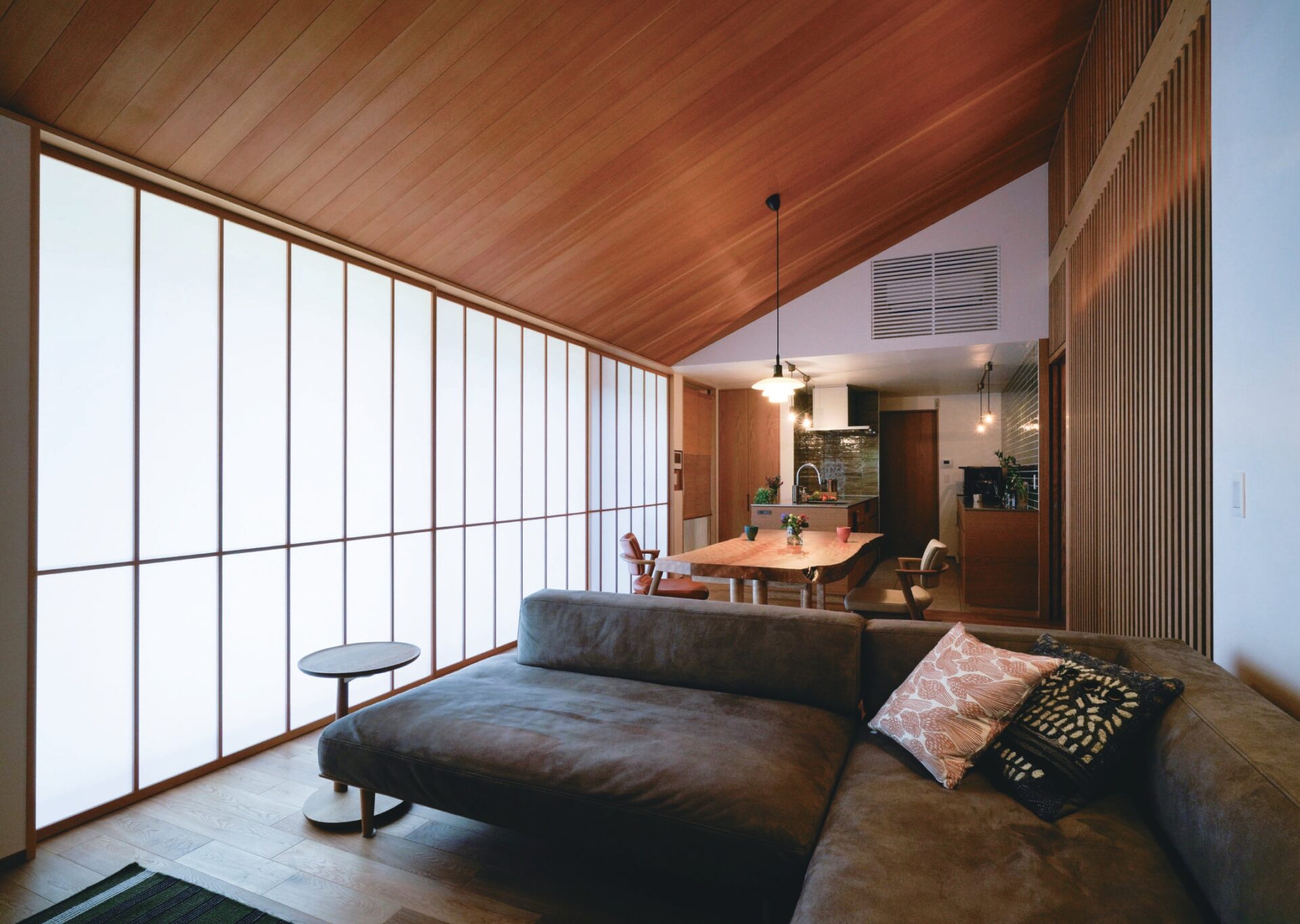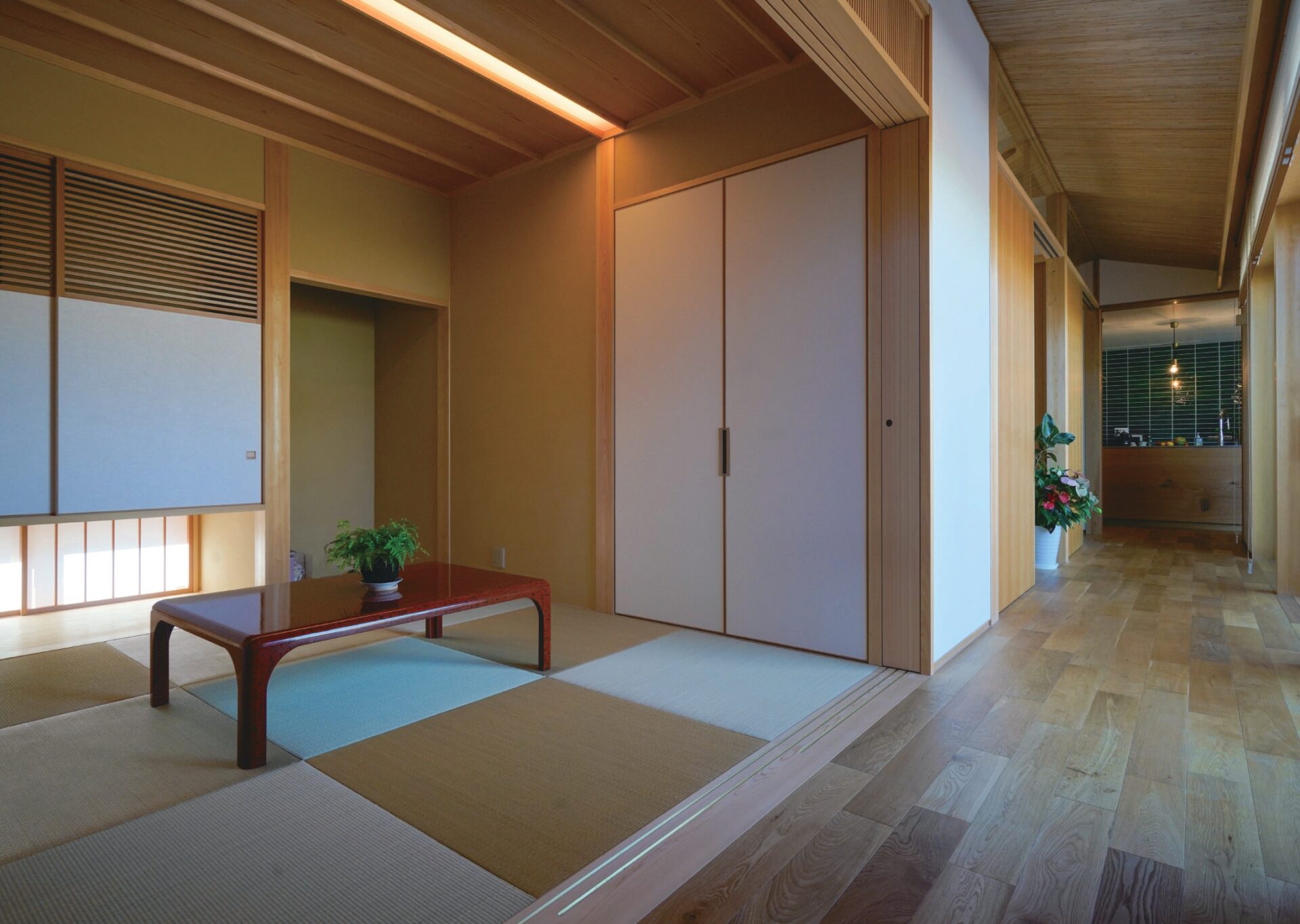 このようなお互いを尊重しながら静かに暮らすことができる「和敬静寂の家」は和洋折衷のシンプルな現代数寄屋と言えると思います。