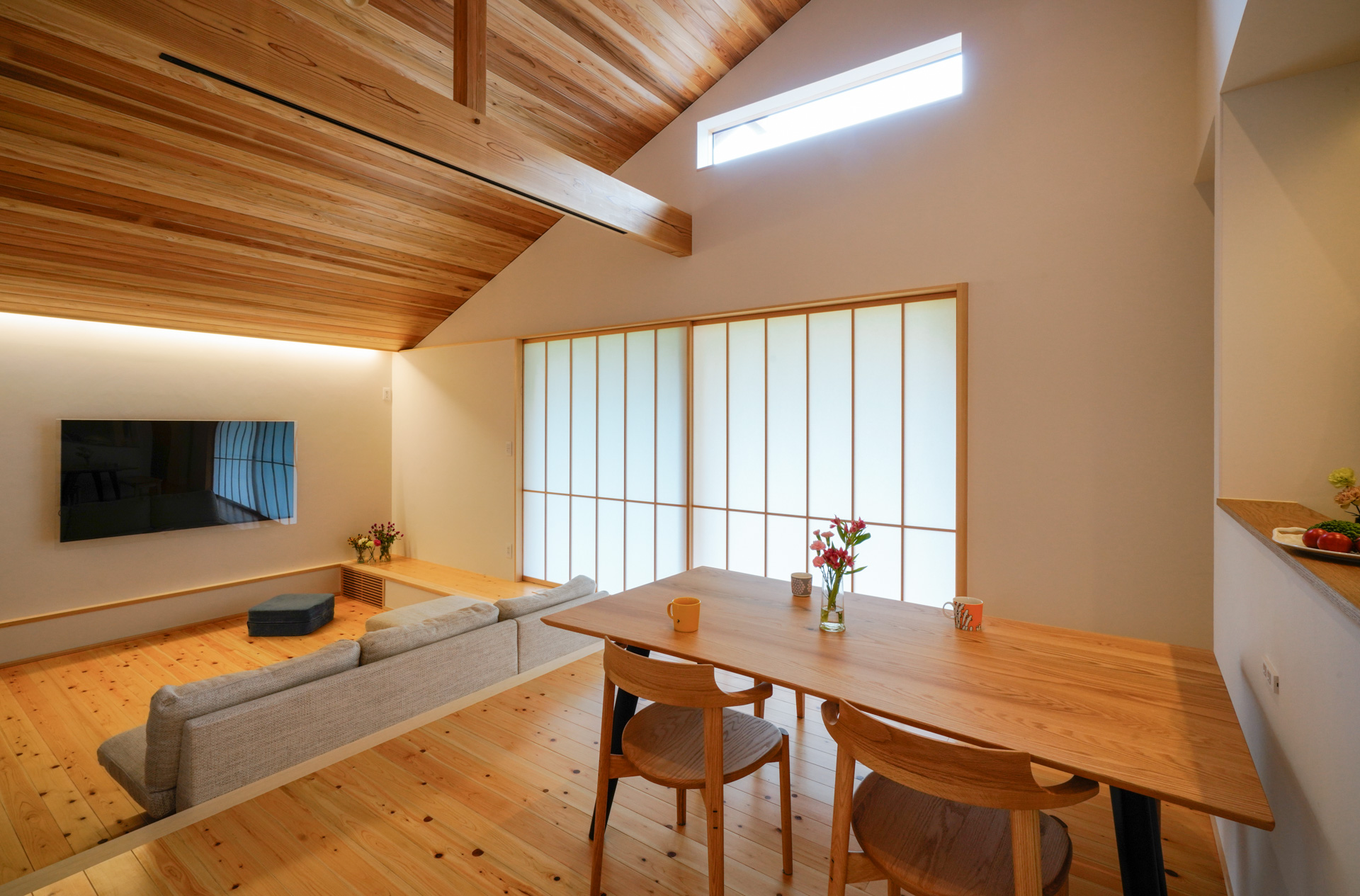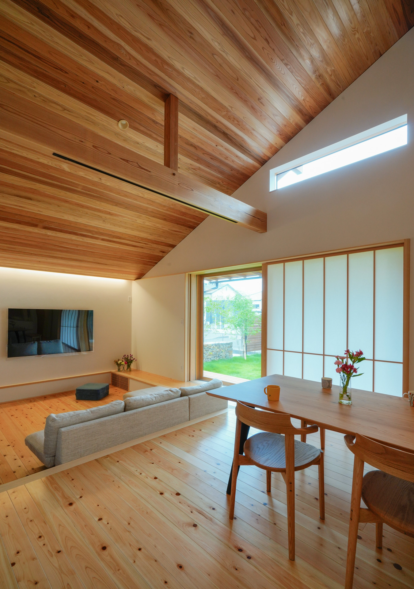 深い軒のかかる屋根は夏の日差しを遮り、冬の日差しを取り込む、日本の家づくりの知恵が生きています。