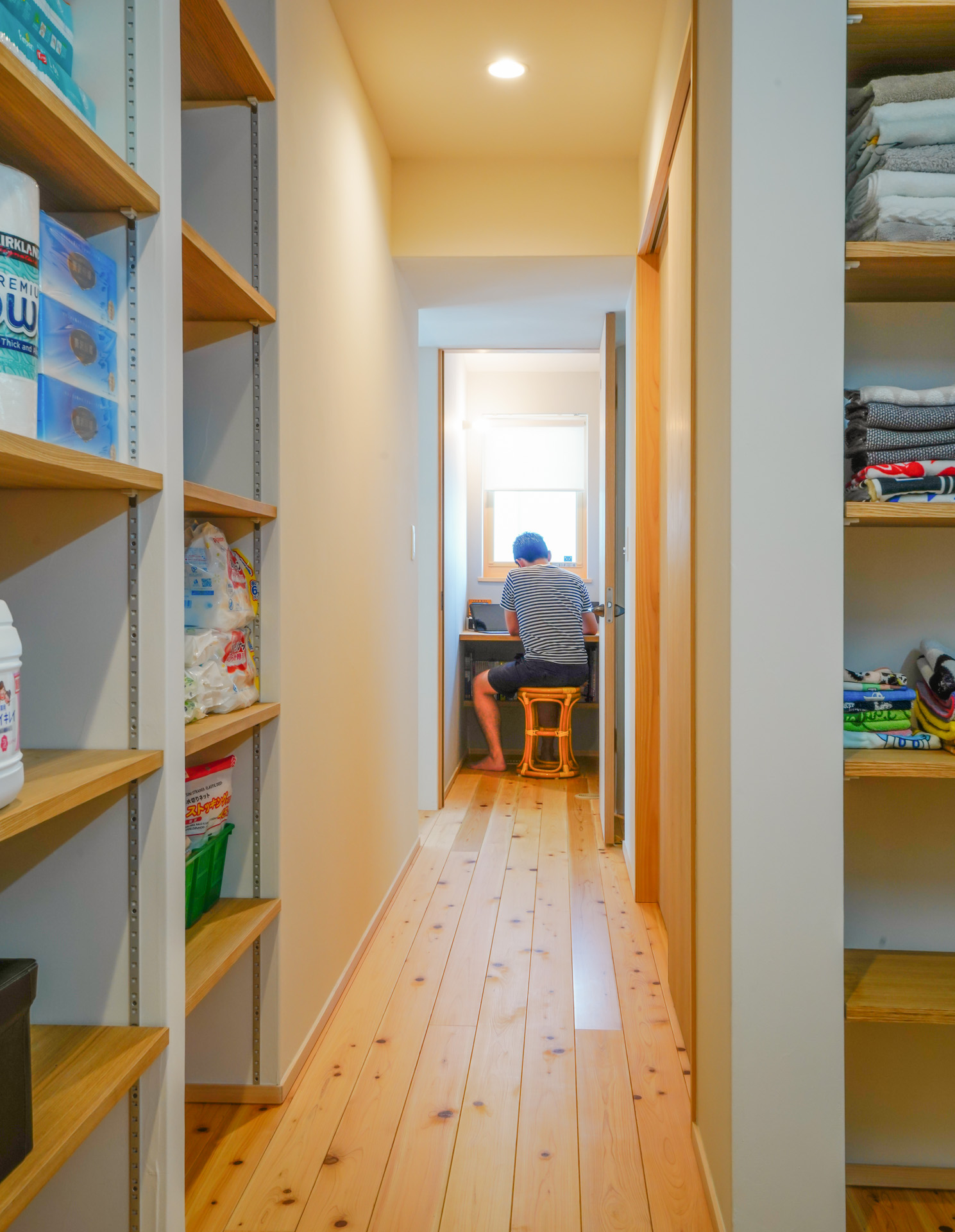 玄関から大容量の収納を通りながら室内に入る動線、家中を回れる回遊動線など、使いやすさと広さを感じるつくりになっています。