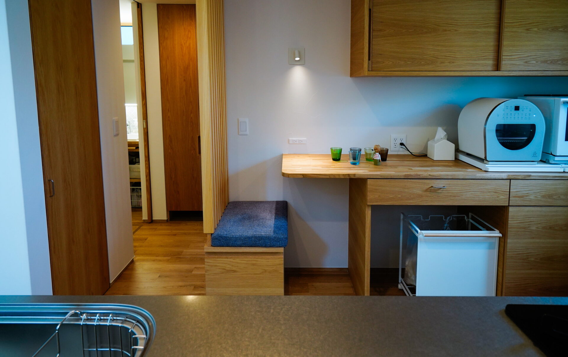 建具や造作、一部天井の木部により、木の質感と柔らかさも感じることができ、いろんな場所で感性に響く家となりました。
